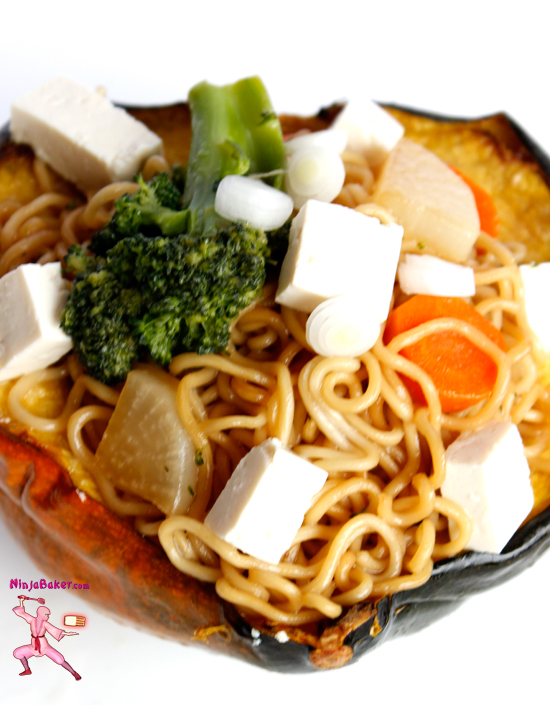 Divide the ramen and veggies into the acorn squash bowls. Garnish with tofu and scallions, if desired. Enjoy with additional soy sauce and black or Japanese togarashi chili pepper to taste.