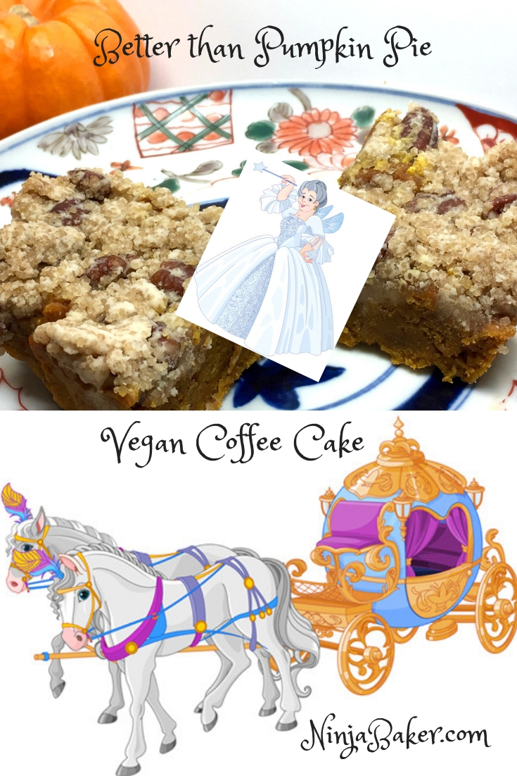 If you want tangible, tasty magic right away, make my Better than Pumpkin Pie Vegan Coffee Cake. It’s perfect for brunch and will be done almost before you can say bibbidi-bobbidi-boo!