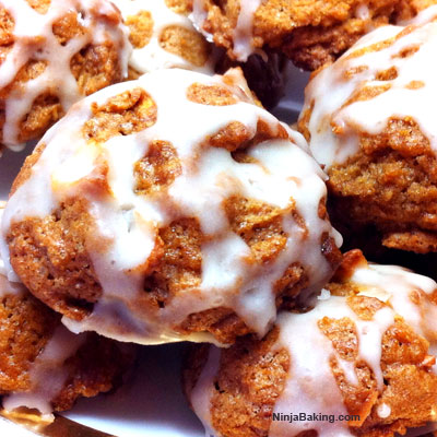 Whisk together the powdered sugar, apple juice and maple syrup. Drizzle over the cookies with a fork.