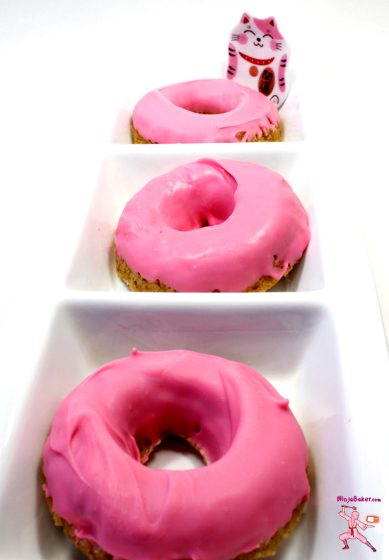 I nibbled the Ninja Baker’s adaptation of a BabyCakes gluten-free donut. Deeeelicious! Whew! Substituting banana for applesauce along with a few other Ninja tweaks made for one scrumptious gluten-free donut. Dare I say it? I do believe my gluten-free donut was better than a regular cake donut! Added bonus: My gluten-free donuts are also vegan!
