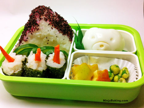 My contribution is a Japanese Picnic Bento Box. The beauty of the bento box is you can tailor make every item to your liking. The Ninja Baker’s offering is potpourri of suggestions.