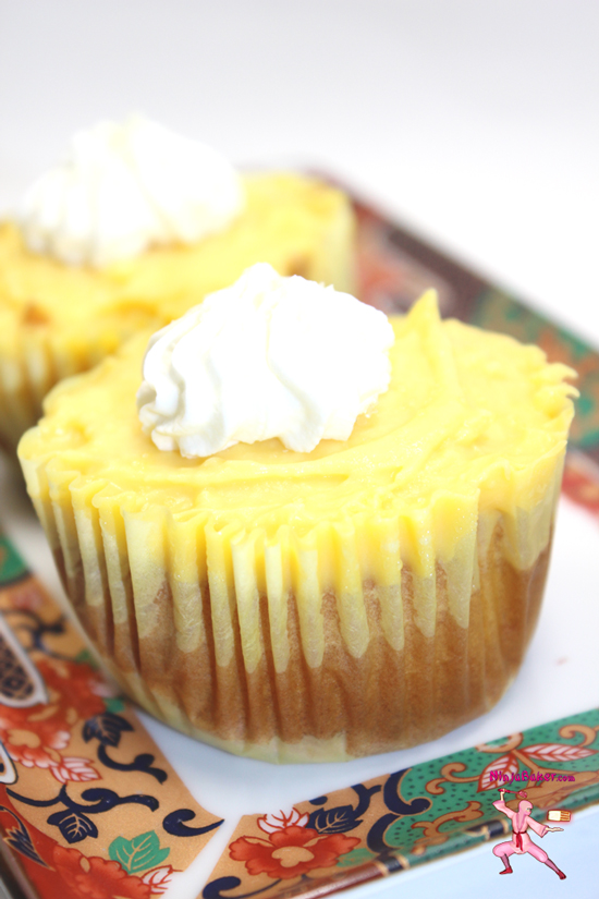 Scoop the custard on top of the cooled lemon cakes. Freeze overnight and garnish with whipped cream.