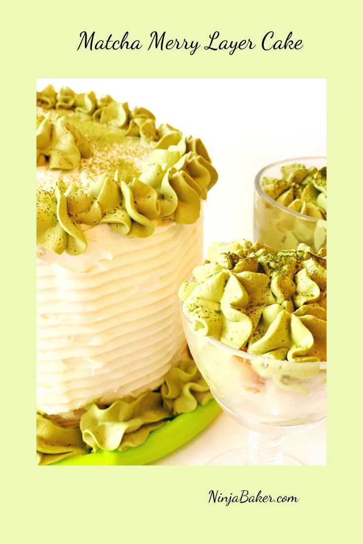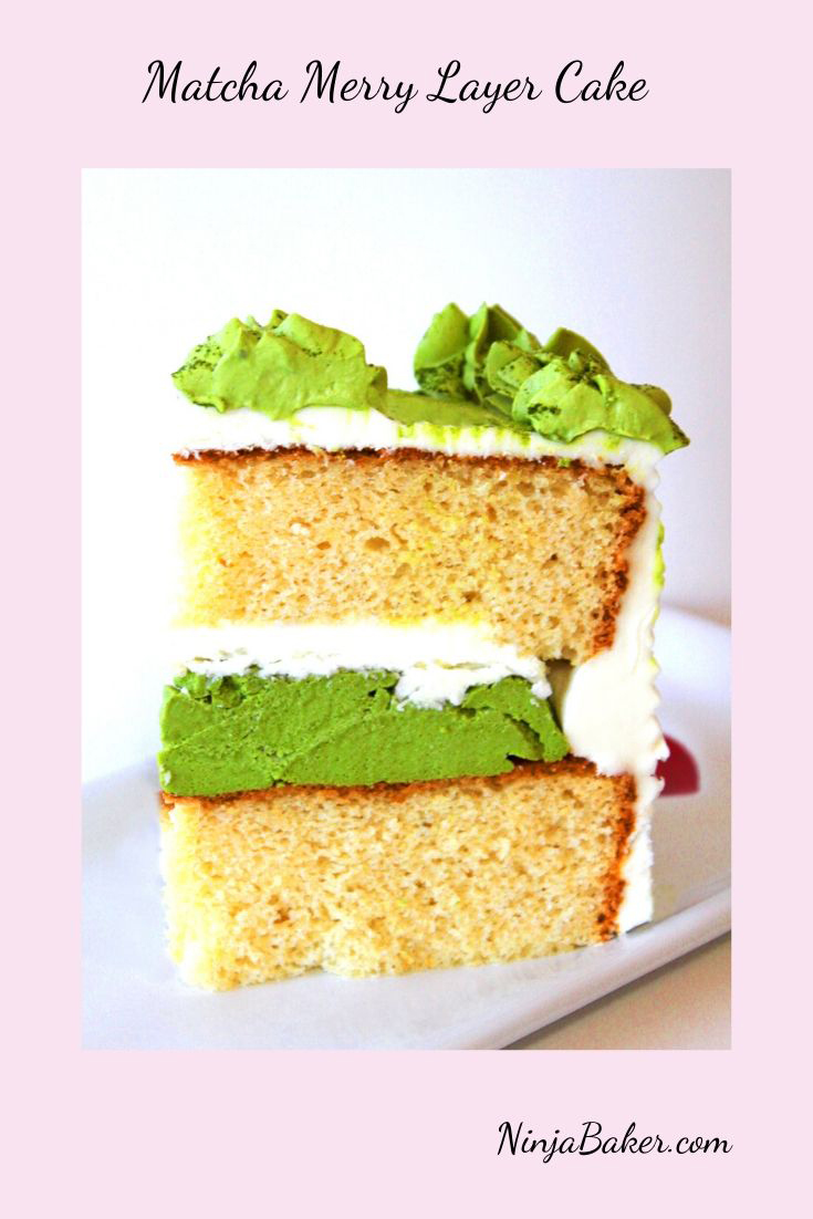Matcha Merry Layer Cake is like a Japanese tea ceremony in one bite! Edgy matcha green tea flavor complements sweet vanilla frosting and fluffy cake. Plus, the matcha mousse blends harmoniously with the other elements of the cake.
