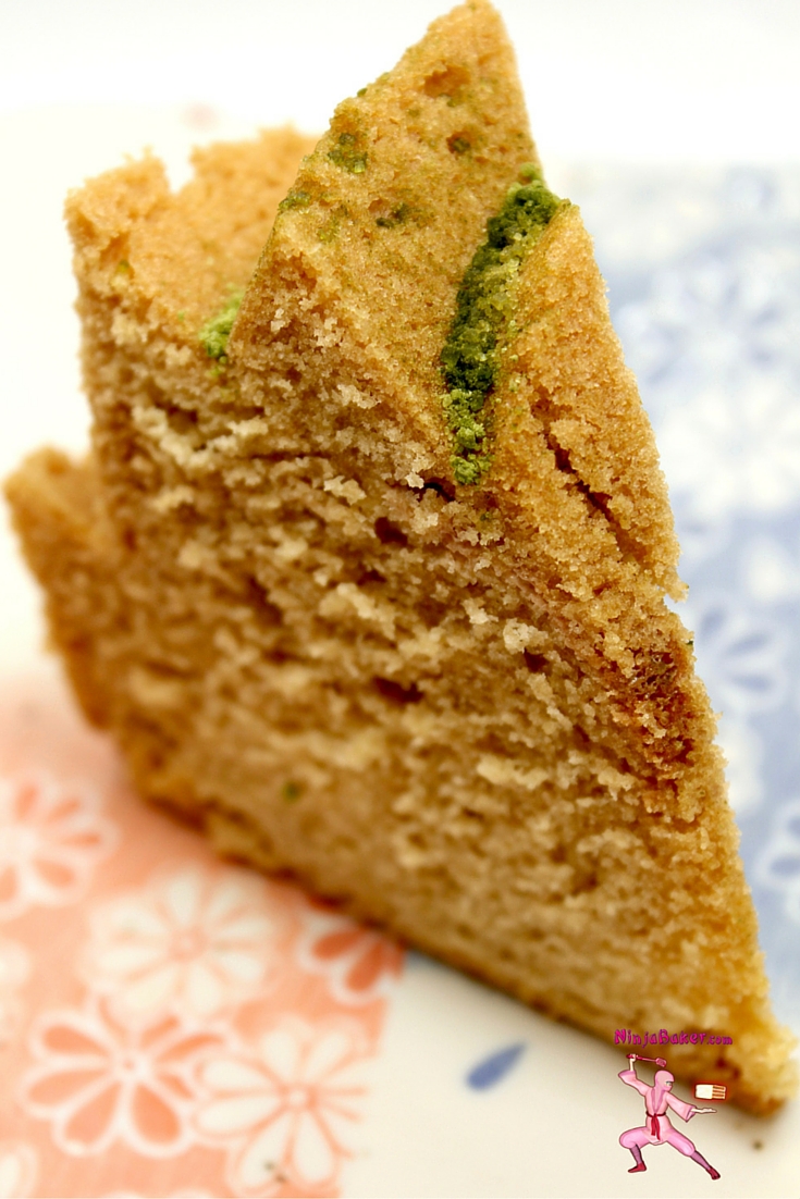 I whisk together premium Japanese green tea matcha powder with cane sugar. I sprinkle the Emerald City matcha magic atop the cooled cake. Finally, I slice into the moist, baked all the way through (whew!) cake…But, wait! Where’s my pretty nod to Dorothy’s red shoes swirl? The golden yellow way has swallowed the red swirls….Still, the cake looks good. Moist and rich…I take a taste. Yes, perfection. Especially with the green tea matcha sugar crunch.