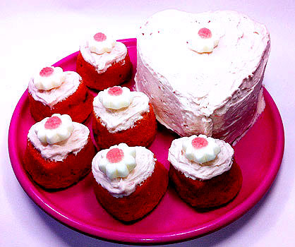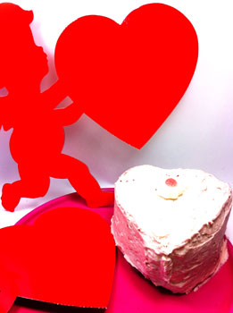 Happy to report, too, the pink of my Strawberry Valentine Hearts is all natural. Not a drop of food coloring went into the mix or the frosting. The cake recipe is from Allrecipes.com's Gothic Girl. Ingredients include sifted cake flour, strawberry jello, milk, butter, sugar, vanilla and pureed strawberries. All the lovely stuff of life!