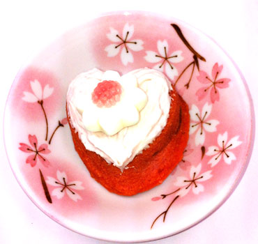 Gothic Girl recommended sweetened frozen strawberries. I opted for non-sweetened and swirled in a generous 1/4 teaspoon of organic strawberry jam into each mini heart. (About a half teaspoon for the larger layer hearts.) The result was dee-lightful! Light, luscious and infused with strawberry, the cake was yummy. And the delicious factor was enhanced when topped with the Ninja Baker's Strawberry Buttercream.