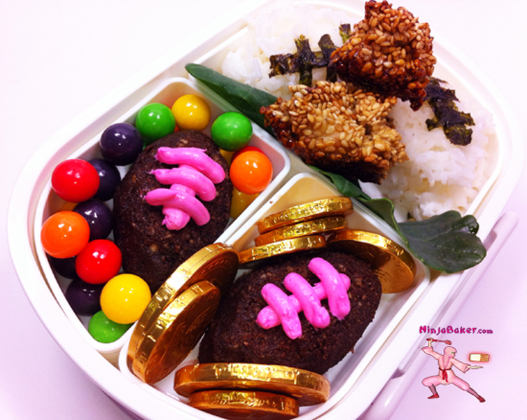 Japanese fried karaage chicken is a bento lunch box staple. For my health conscious husband, I created this baked sesame chicken. Same crunch factor. Plus, the bonus of an assertive sesame flavor paired with a tangy soy and honey sauce.