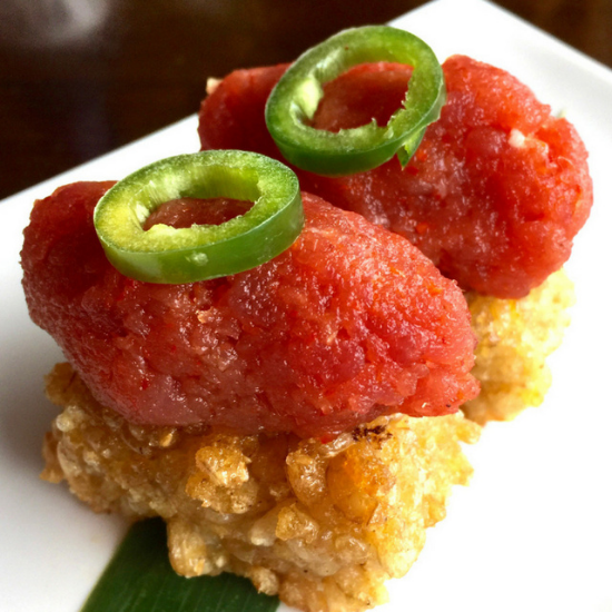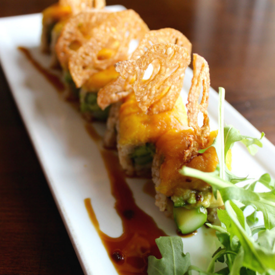 Today every dish and dessert at RICE is gluten-free and dairy-free. The Yellow Submarine sushi is but one of the vegan beauties. Topped with squash and fried lotus root, the sushi is a bestseller. The vegan chocolate mousse is also exquisite. Creamy, rich and decadent, this writer never knew good for you cake could taste so good!