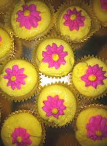If you are a purist, however, and can easily survive without buttercream decorations, Julia Child’s (Mastering the Art of French Cooking) orange cake recipe (adapted by the Ninja Baker into cupcakes) was a hit with my friends Masuno-san and Akio-san. The frosting (from allrecipes.com) and the cake both call for quite a bit of fresh orange. (I also topped off some of the cupcakes with chocolate frosting. I used the recipe off the Ghirardelli cocoa container.)