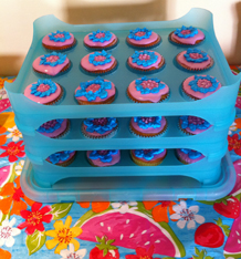Akio-san picks up an orange cupcake with Ghiradelli frosting while |