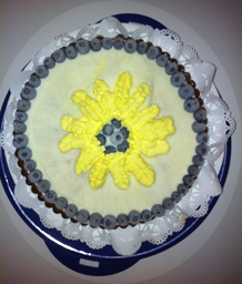 This time I practiced my sunflower decoration and used fresh blueberries. But the cinnamon topping on peaches and pears sounds great!