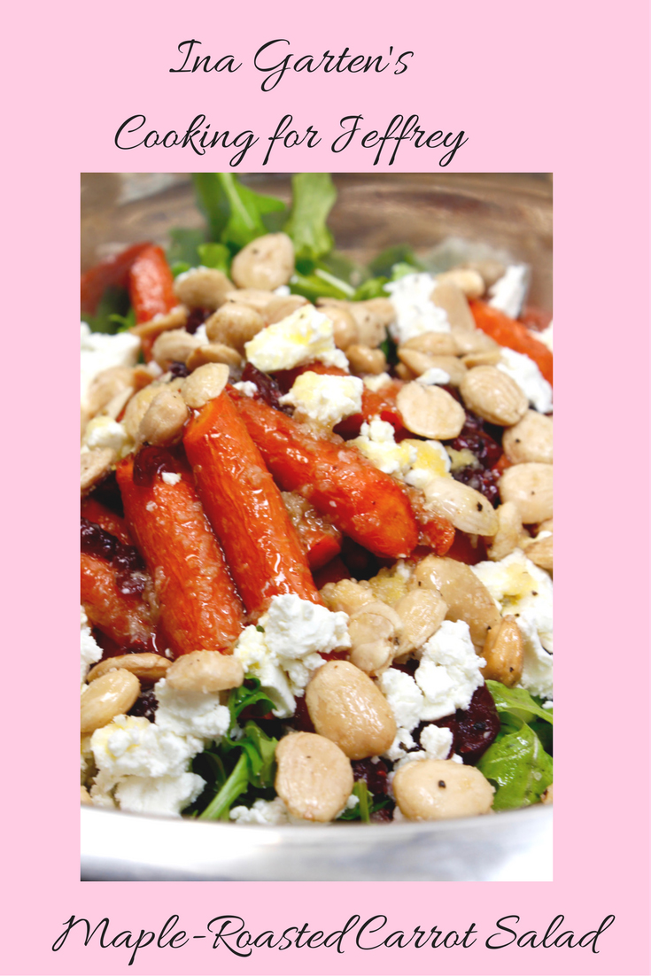 I’m looking forward to making Pecan Rum Raisin Ice Cream and the Vanilla Cream Cheese Pound Cake Cooking for Jeffrey. However, I decided to start with a healthy choice: Ina Garten’s Maple-Roasted Carrot Salad.